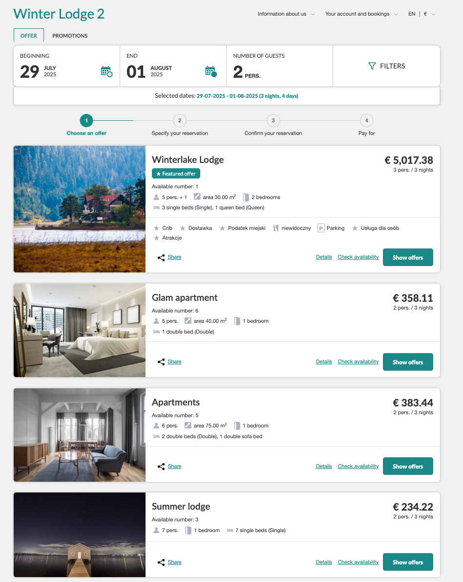 A new offer-highlighting module has appeared in our Booking Engine, allowing flexible control over the order of displayed search results. You can now promote selected offers—based on the number of guests—to increase their visibility in listings.